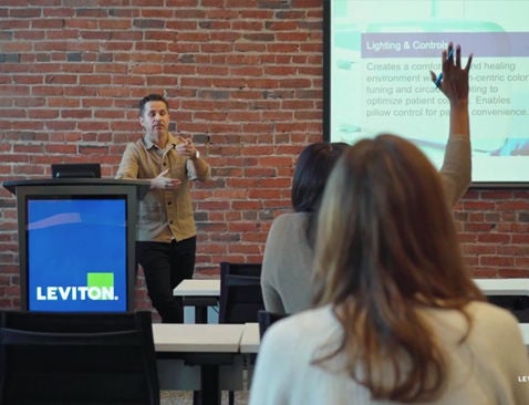 La serie de capacitación sobre ventajas para contratistas anterior está disponible en sesiones de capacitación en persona residenciales, comerciales e industriales en los centros de experiencia en vivo de Leviton.